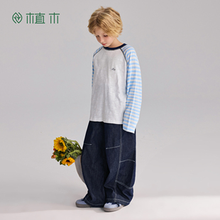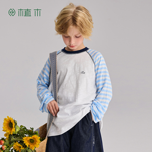 撞色棉T 插肩袖 蓝调拼接记 2026春夏新款 童装 男童T恤长袖 植木由