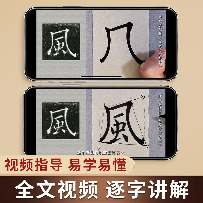 欧阳询九成宫醴泉铭临摹字卡 楷书毛笔字帖全文视频逐字精讲 教程练字帖成人初学者近距离放大版 欧体楷书书法原帖临帖 入门对照版由