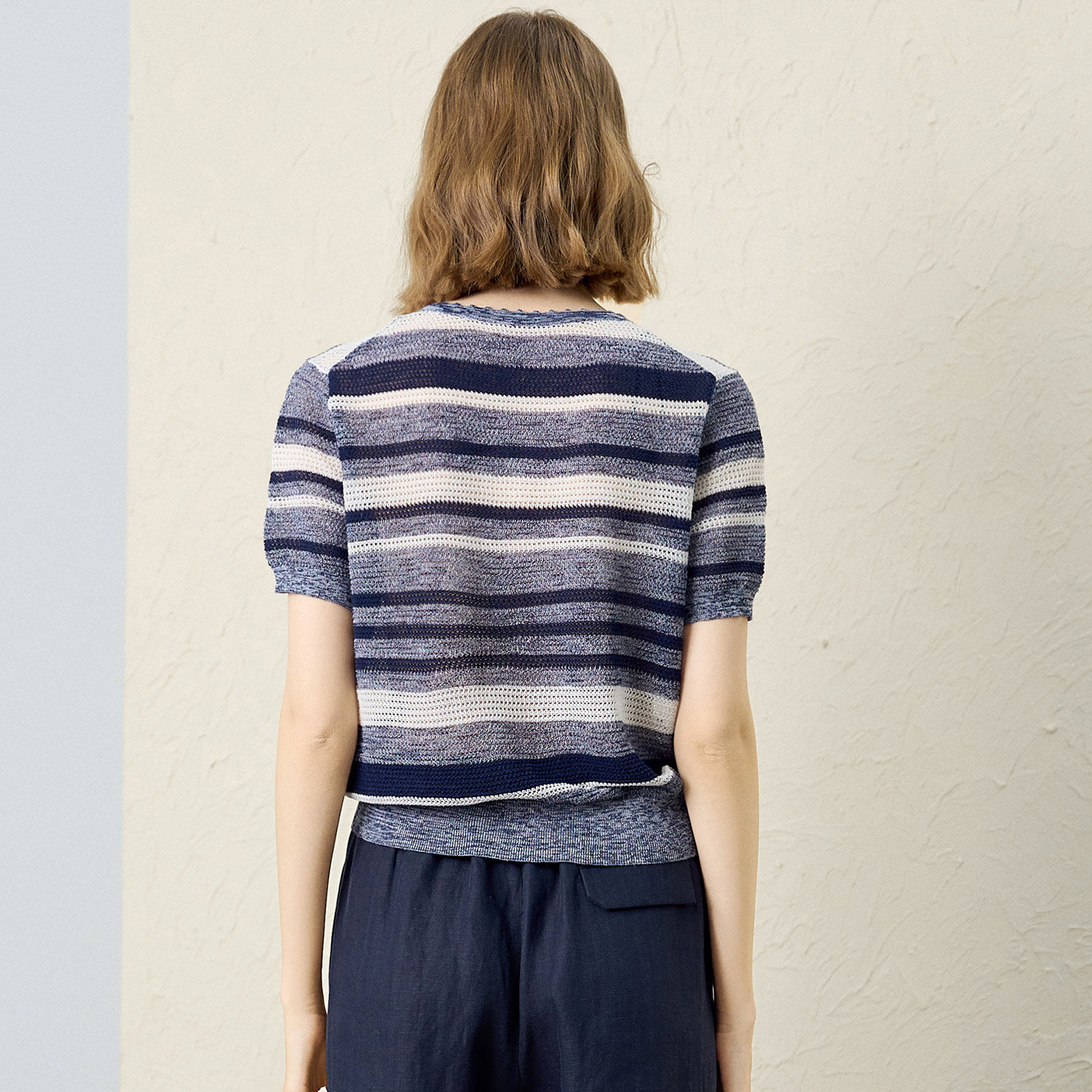 为您提供商品老钱风舒适修身 颜域法式 复古条纹针织上衣女2026夏季 新款 洋气小衫的详细介绍,