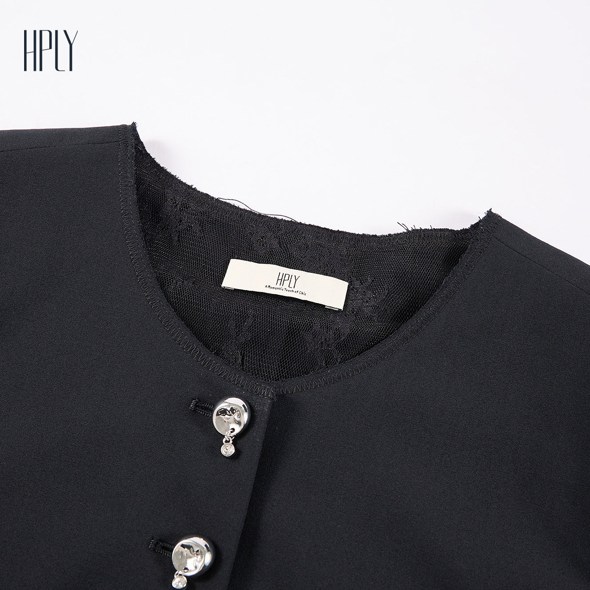 无袖 马甲 含绵羊毛蕾丝拼接短款 HPLY荷比俪2026夏新款 多元 蕾丝