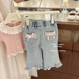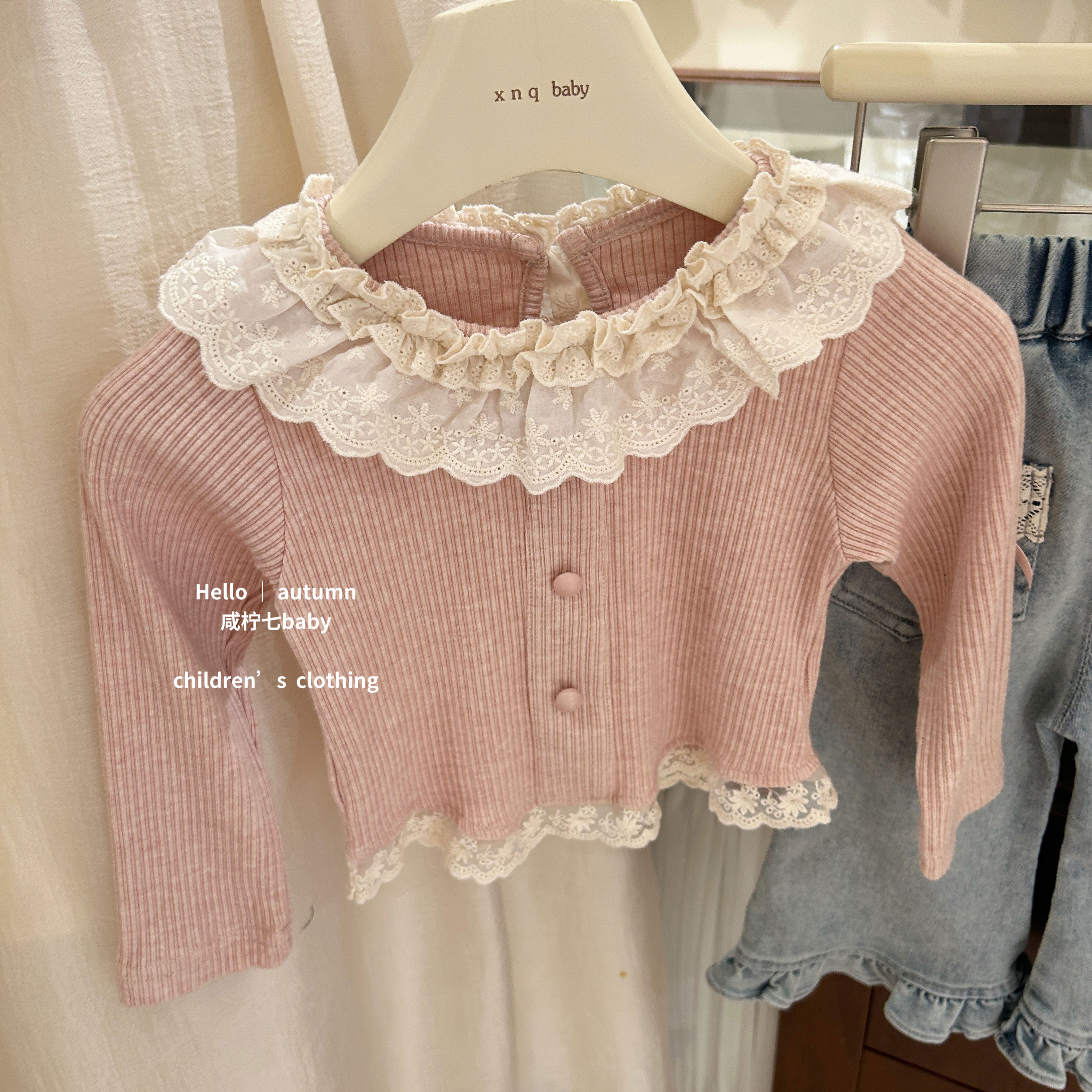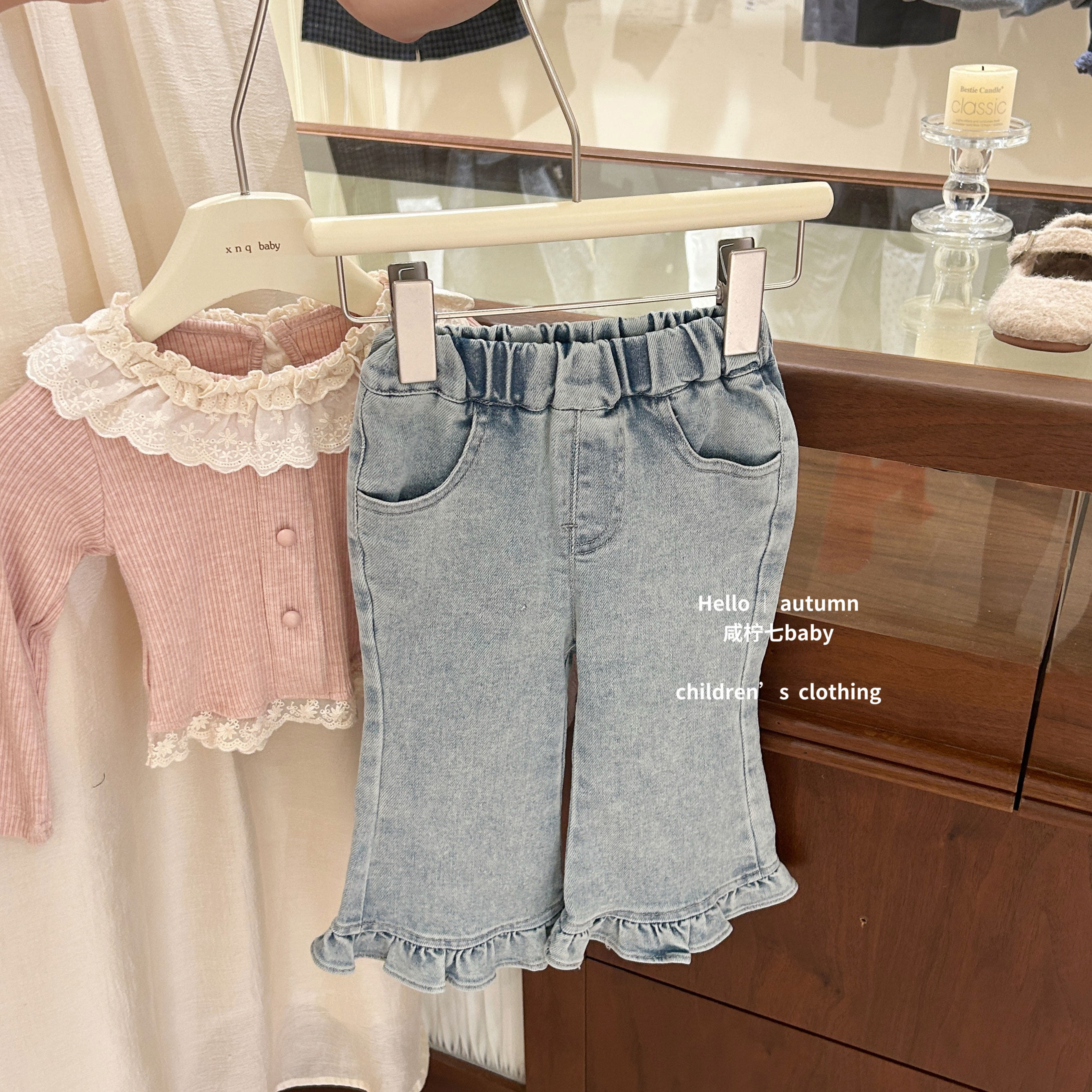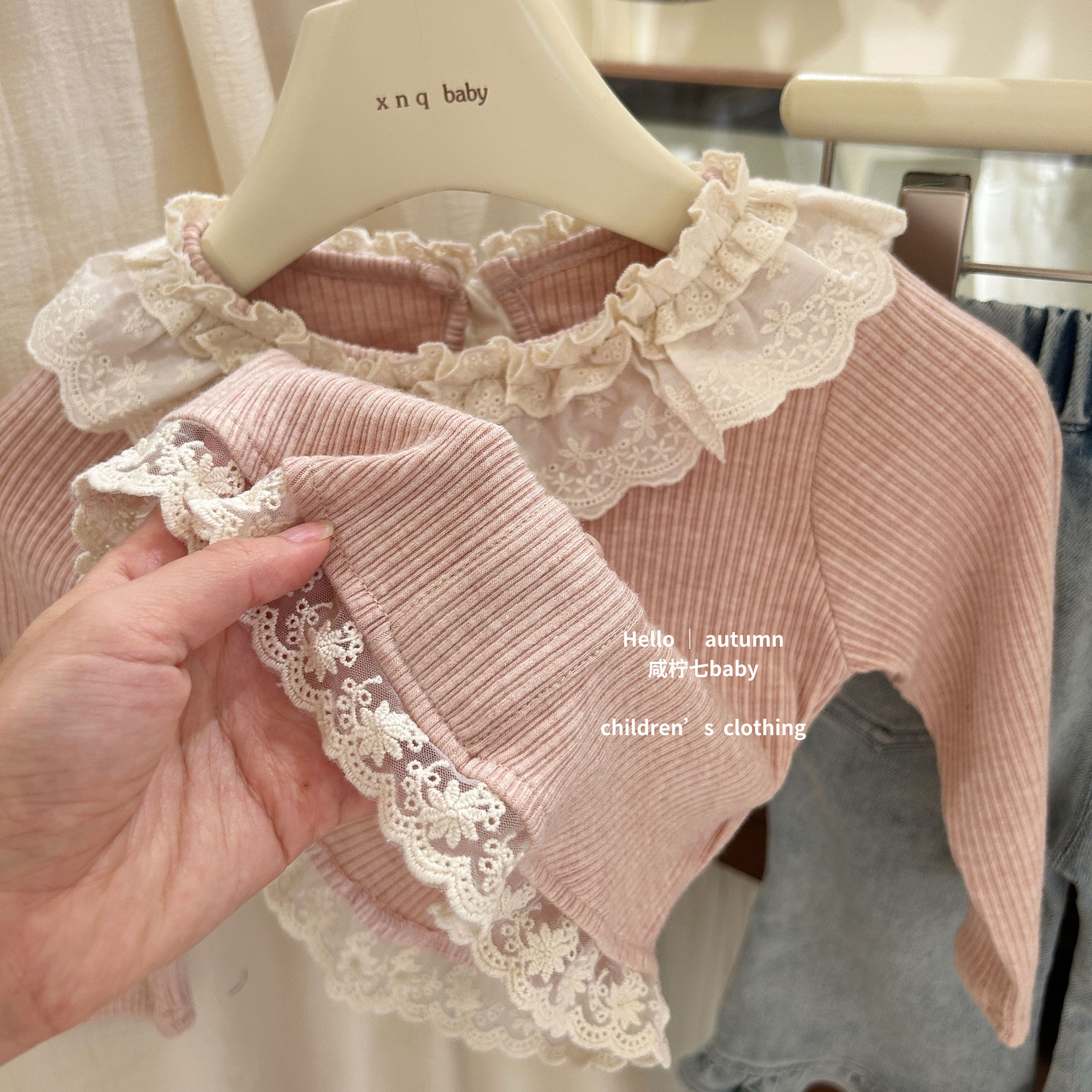 上衣牛仔裤 两件套 儿童洋气蕾丝花边长袖 套装 咸柠七 女童秋季