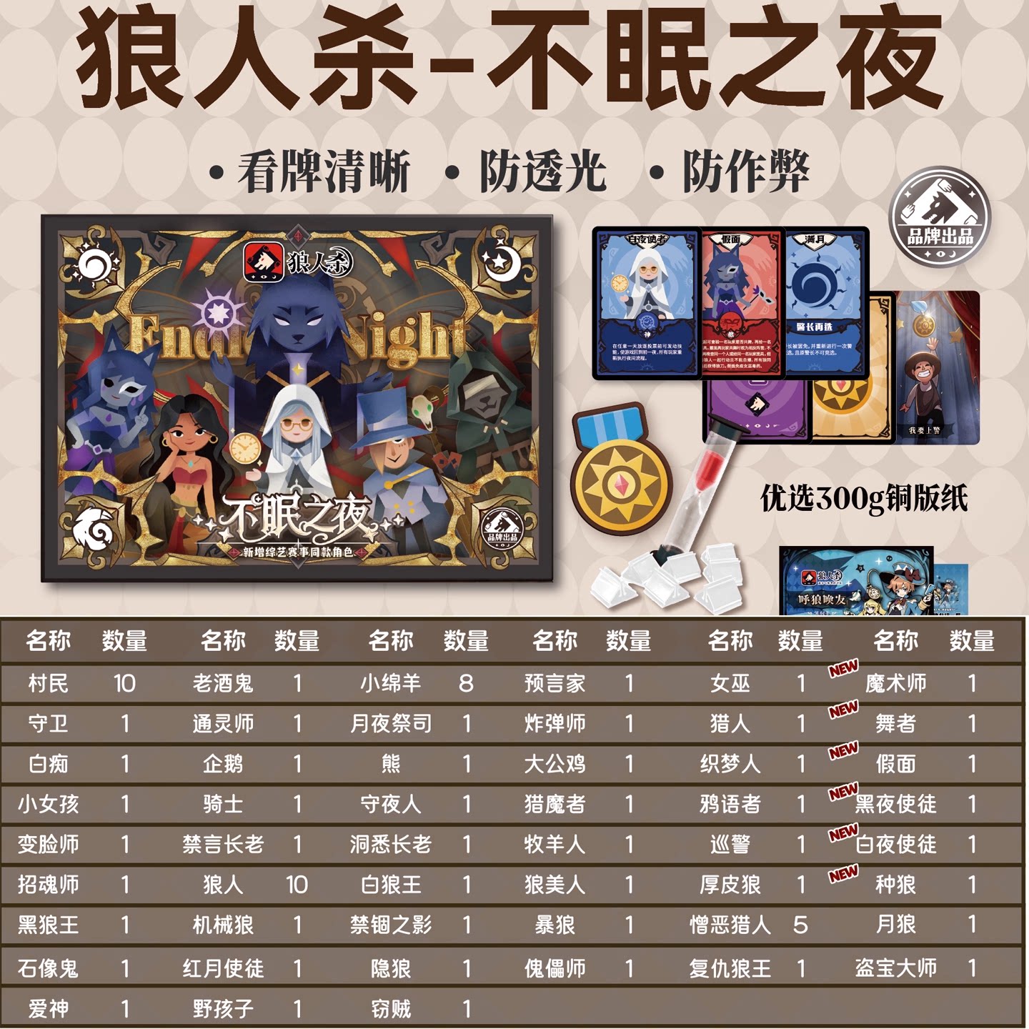 狼人杀E2不眠之夜官方礼盒综艺同款 天黑请闭眼 卡牌全套角色正品由