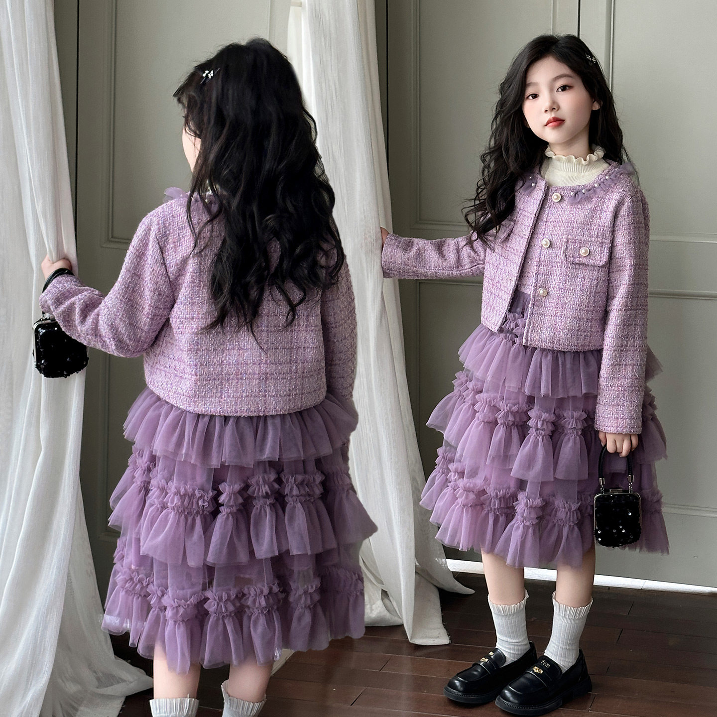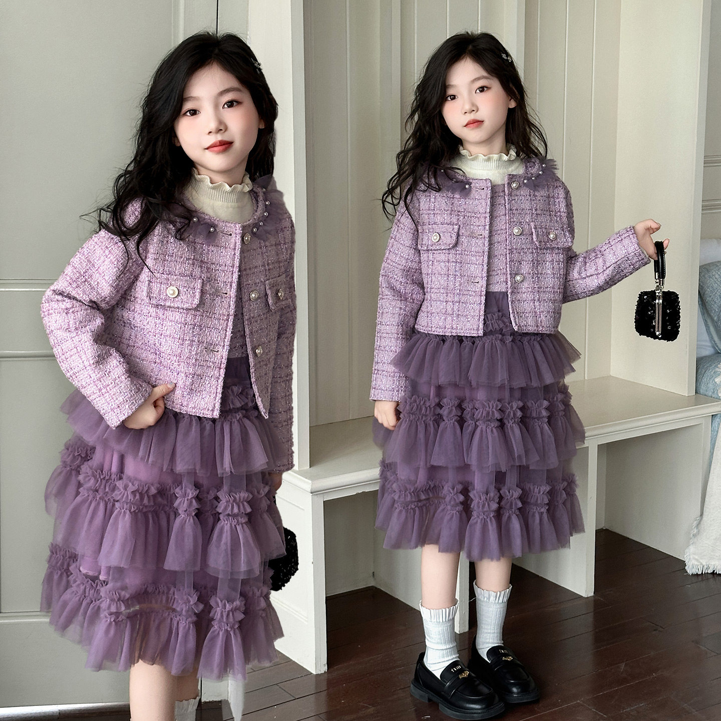 女童小香风外套连衣裙秋冬装 洋气儿童加厚毛衣背心裙两件套潮 新款由