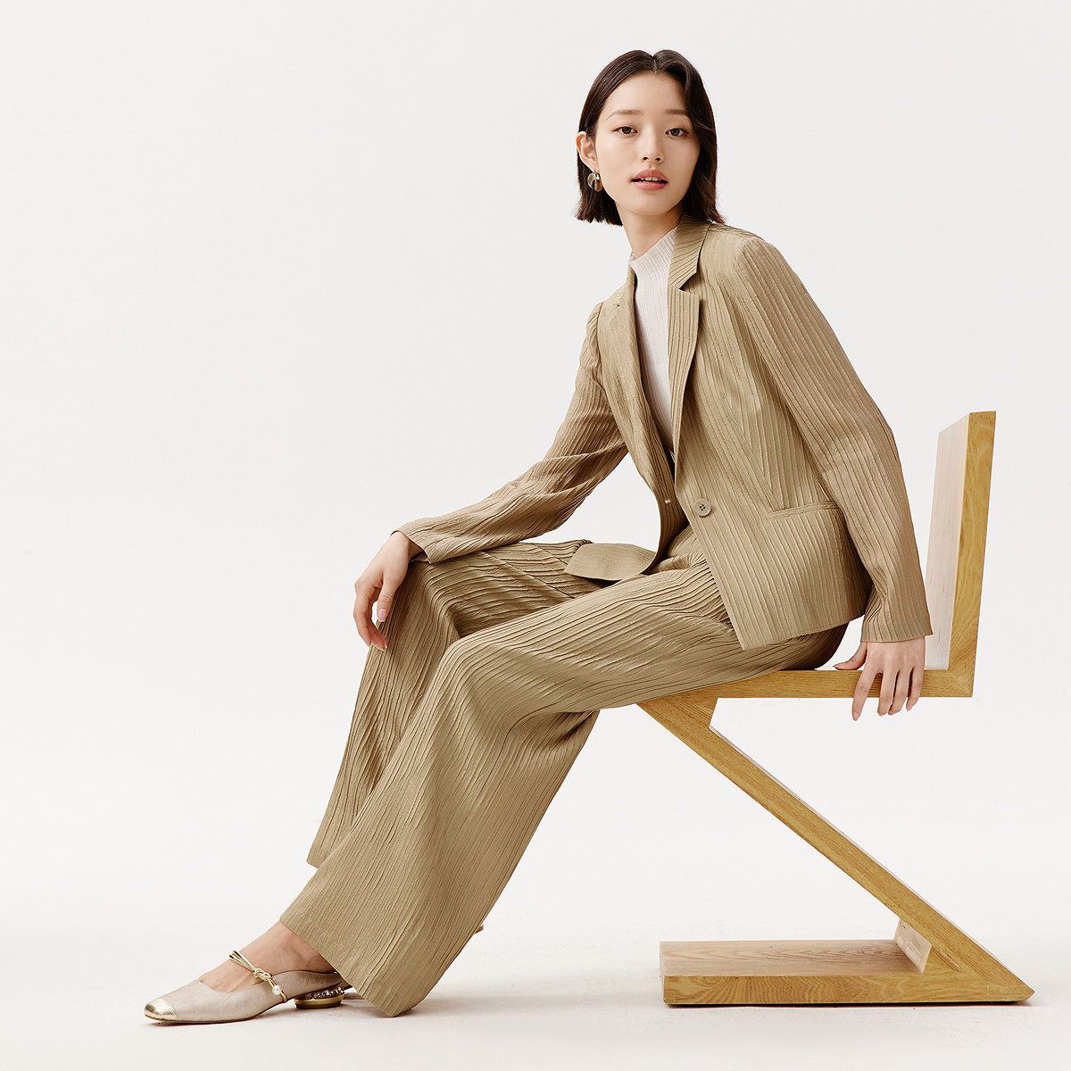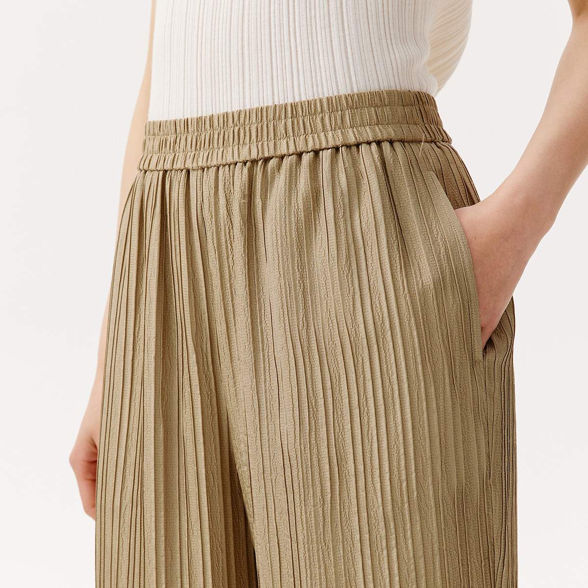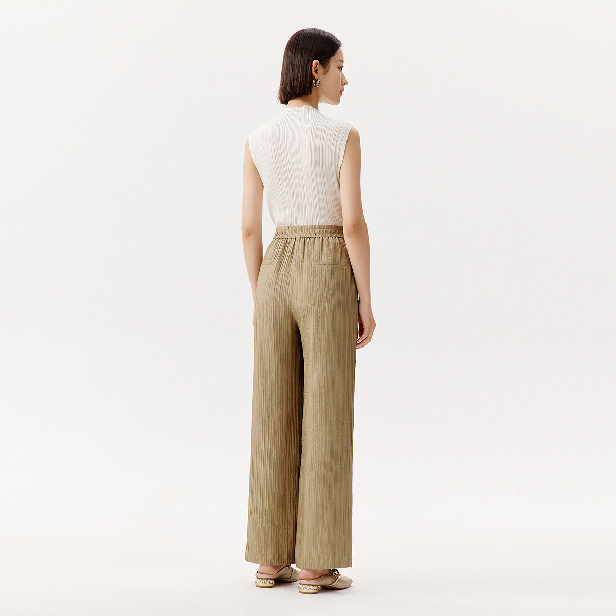 为您提供商品新款 浅卡其色肌理感阔腿长裤 夏季 休闲裤 桑蚕丝 VGRASS女装的详细介绍,