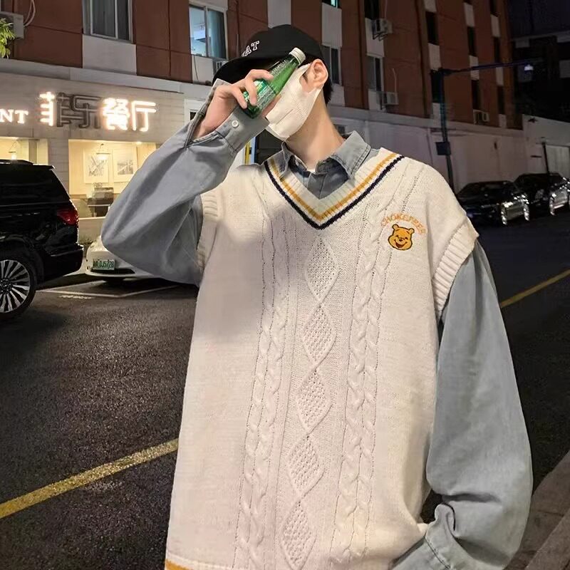 为您提供商品慵懒风小熊毛衣背心男学生秋季 宽松外搭针织v领马甲 300斤韩版 大码的详细介绍,
