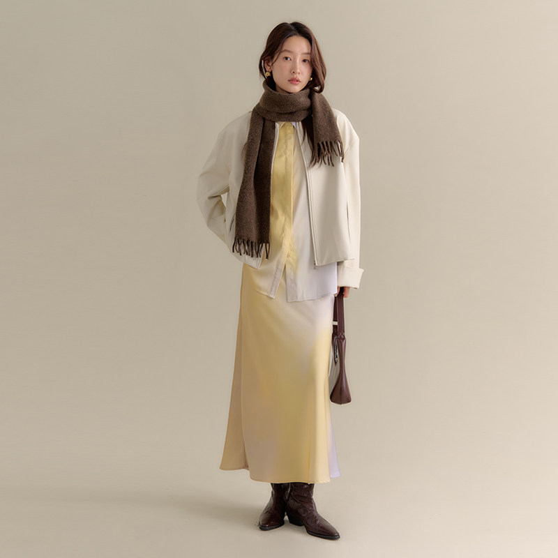 招财黄40%羊毛双拼色修身 吊带裙短外套 明媚假日 bewithRosey