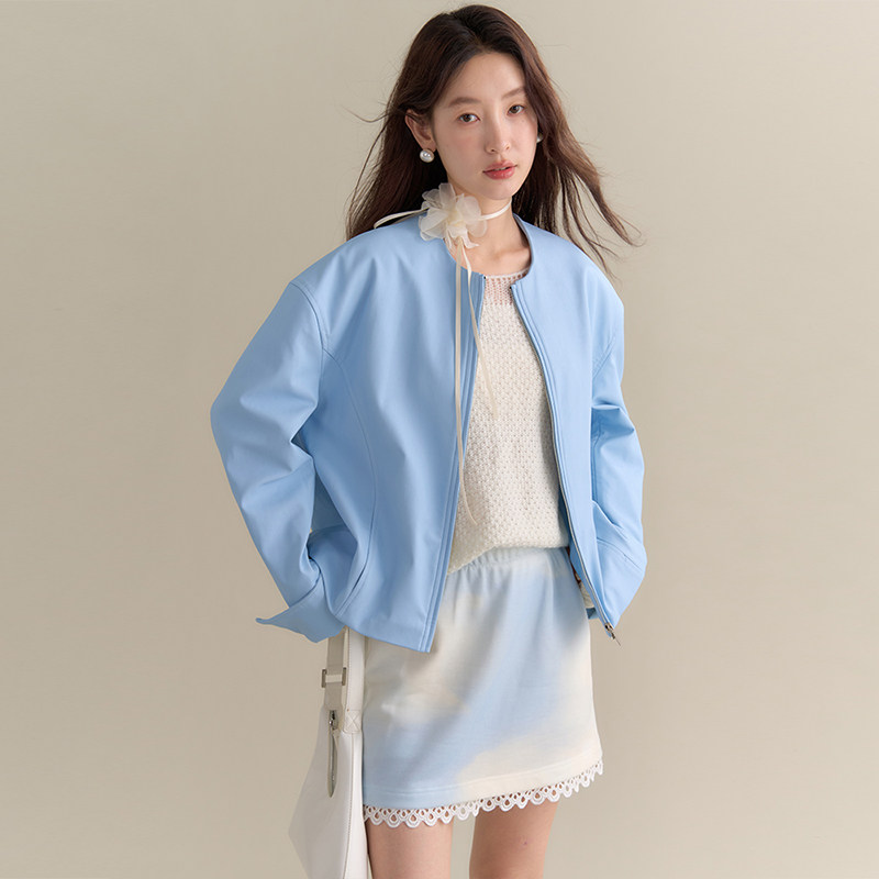 小C家 春季 酷飒风机车服设计感短款 夹克 黑色pu皮衣外套女2026新款