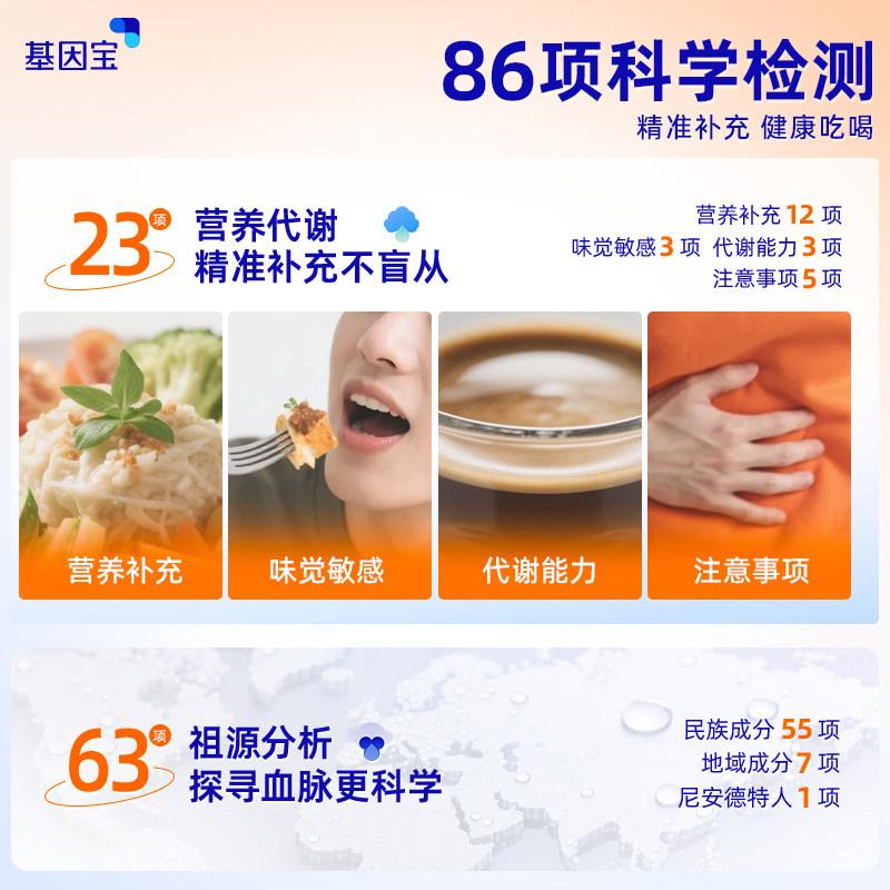 为您提供商品基因宝dna基因检测祖源遗传酒量营养代谢食物不耐受过敏风险的详细介绍,