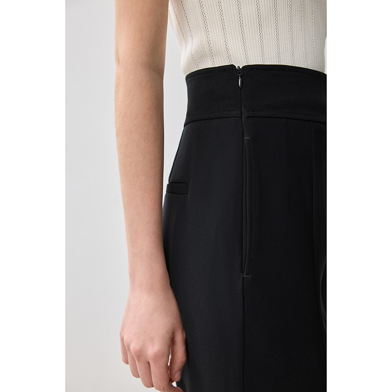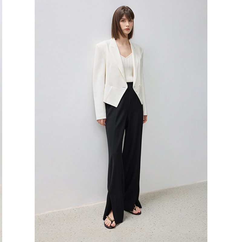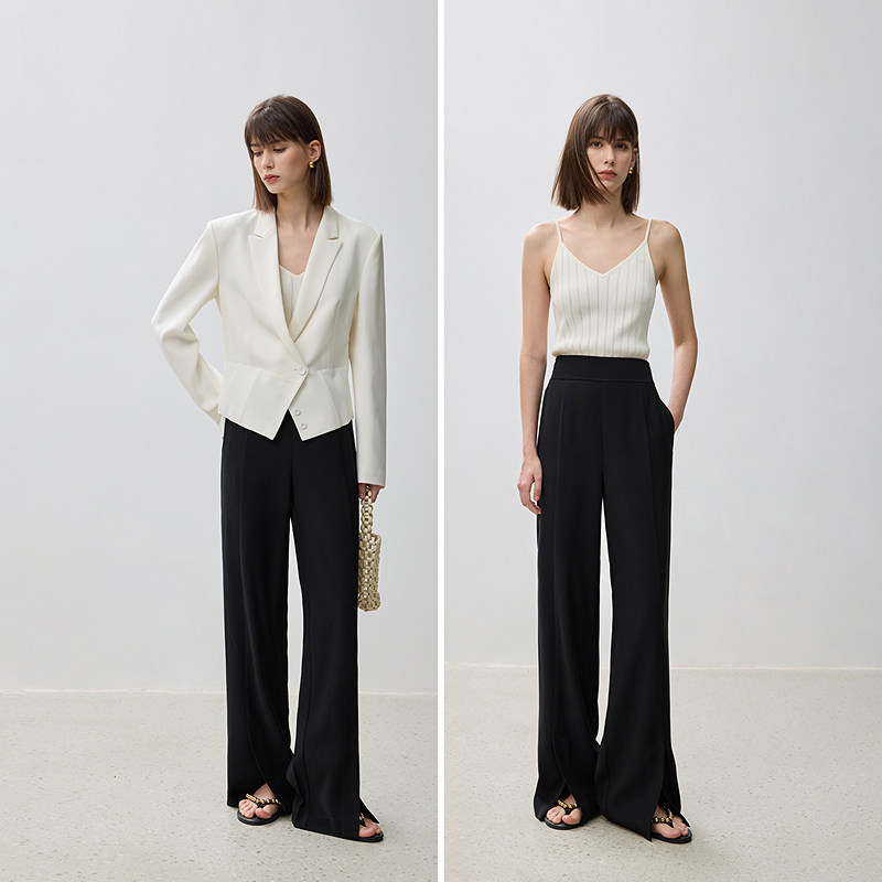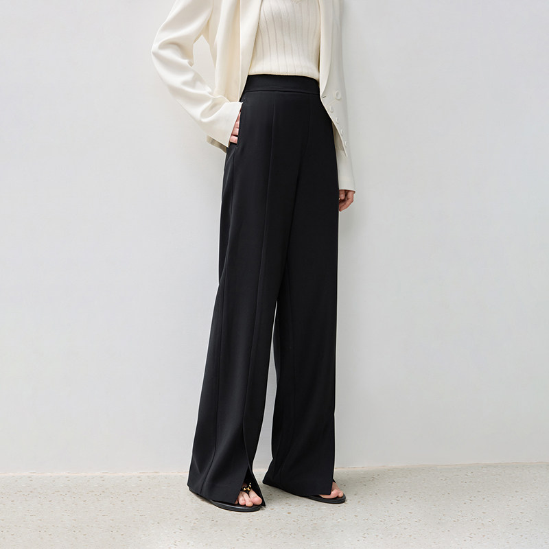 LILY秋新款 哑光磨砂肌理感垂坠开叉黑色阔腿裤 女 商场同款