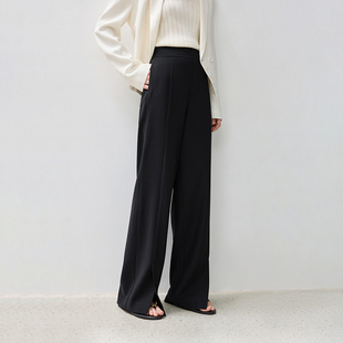 LILY秋新款 哑光磨砂肌理感垂坠开叉黑色阔腿裤 女 商场同款由