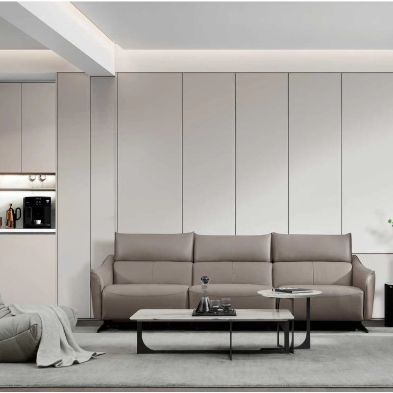 复古风客厅书房多功能伸缩 政府补贴帕沙曼云朵真皮电动沙发床意式