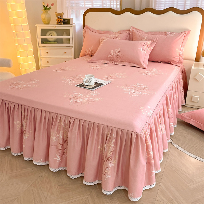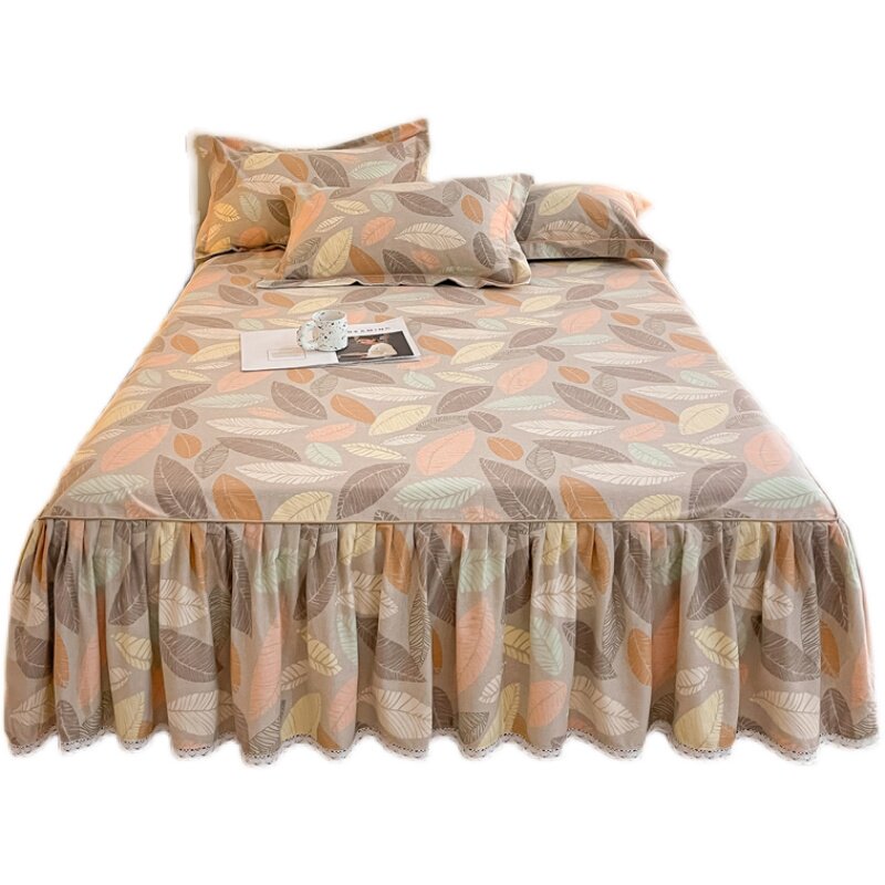 通用加厚防滑纯水洗棉三件套花边床笠罩 A类夹棉床裙单件床盖四季