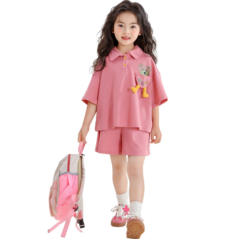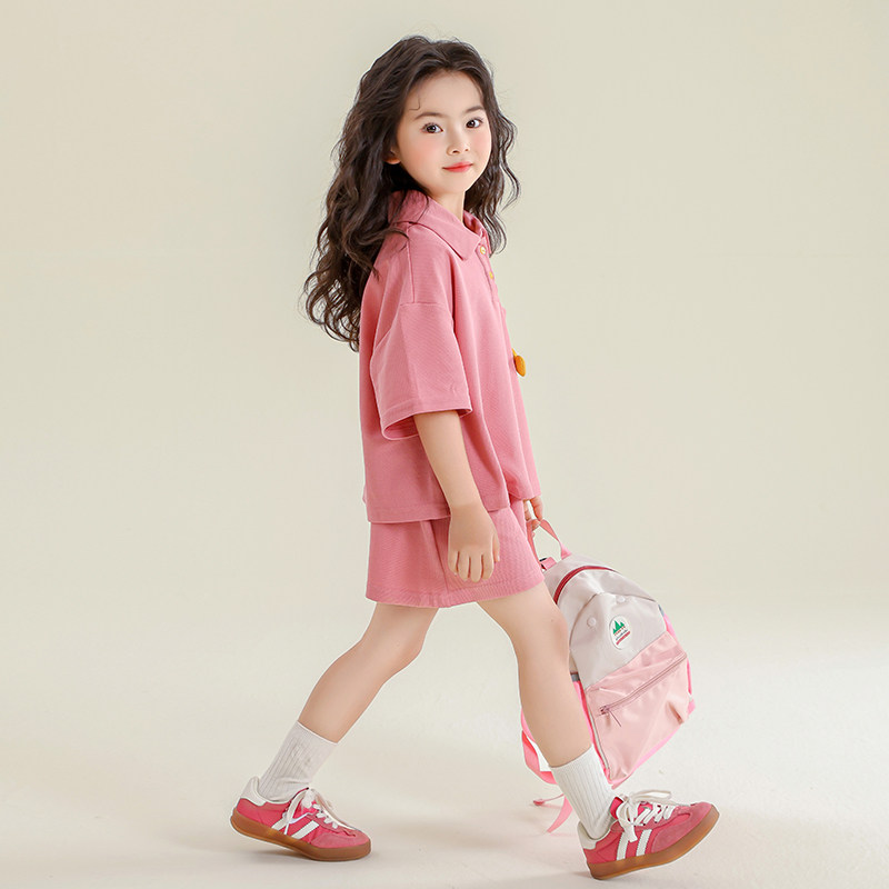 T恤套装 女童夏装 运动POLO衫 短袖 儿童洋气女宝宝两件套潮 2026新款
