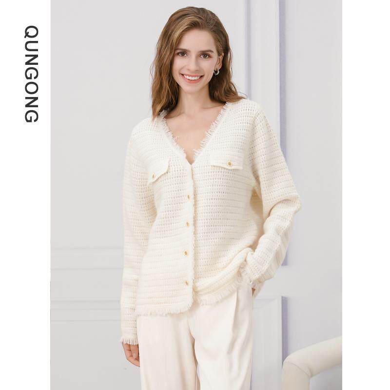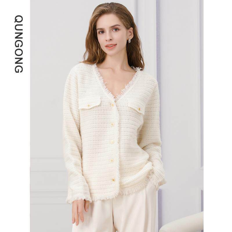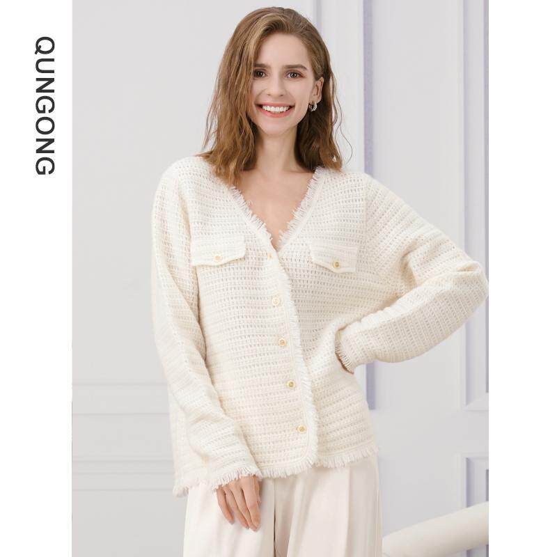 为您提供商品群工秋冬新小香风纯山羊绒衫 开衫 时尚 百搭针织毛衣 女纯色长袖的详细介绍,