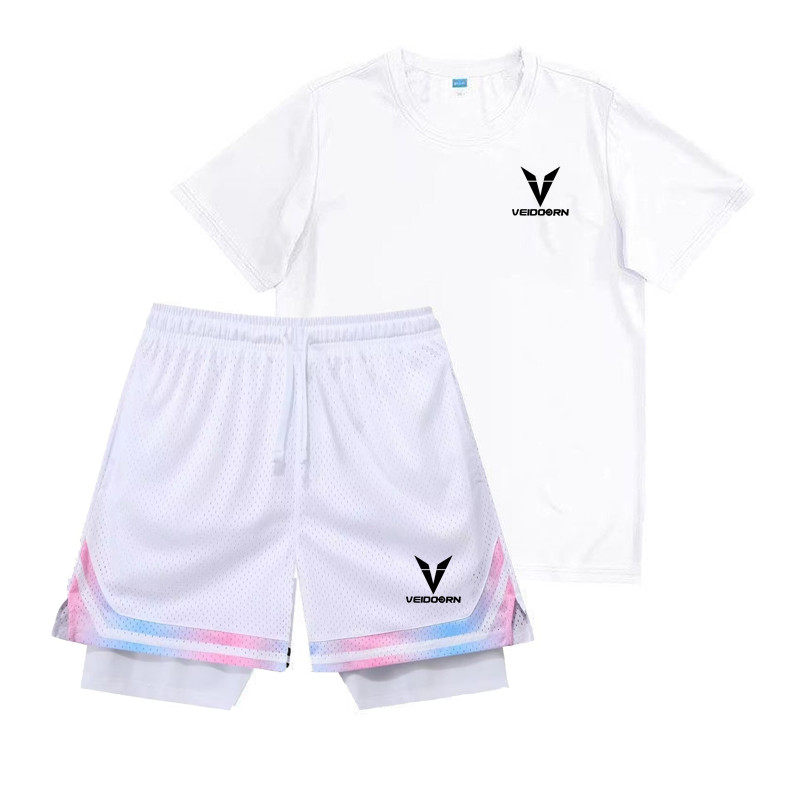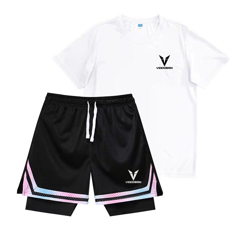 透气网眼速干投篮服短袖 维动美式 运动套装 男夏季 训练服 假两件短裤