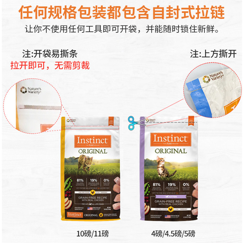 美国instinct百利猫粮生鲜冻干鸡肉10磅进口百丽无谷成幼猫高蛋白由