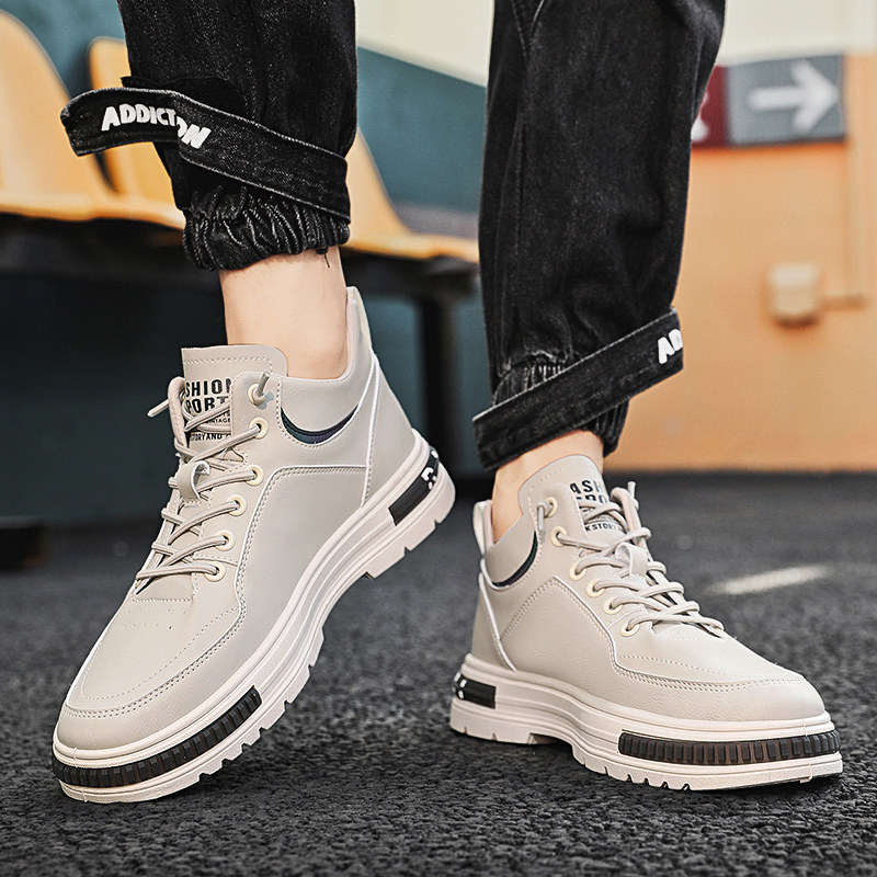 2025新款 中帮机车靴子男生增高皮靴 英伦风黑色高帮皮鞋 马丁靴男款
