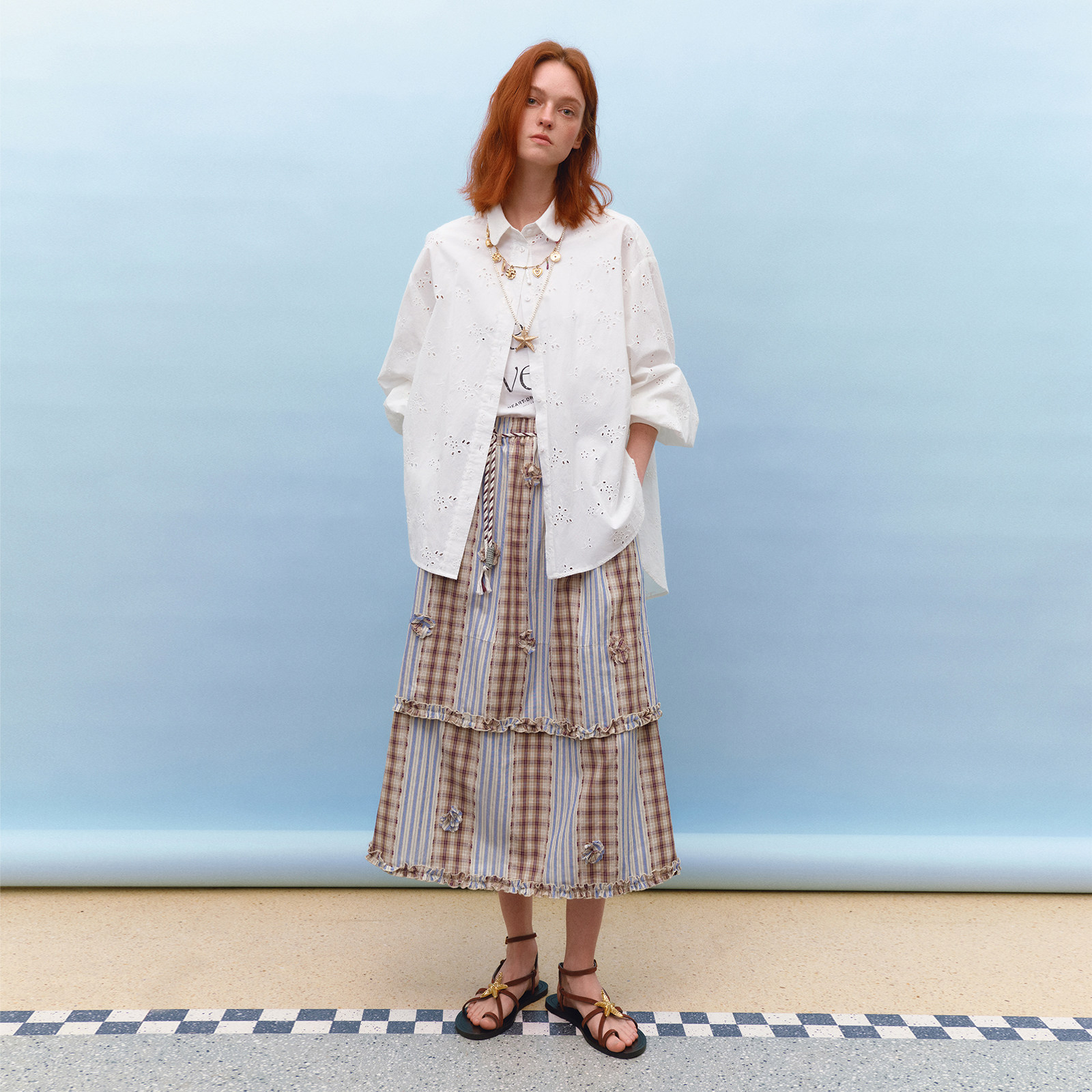 新款 女半身裙 try木耳边拼色格纹设计感半裙含腰带2026夏季 wana
