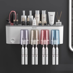 刷牙漱口杯电动刷免打孔置物架 浴室智能家庭牙刷置物架彩杯壁挂式