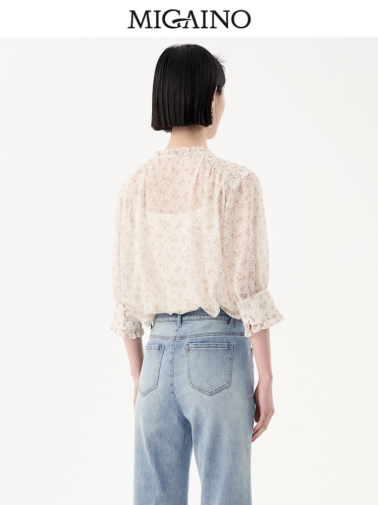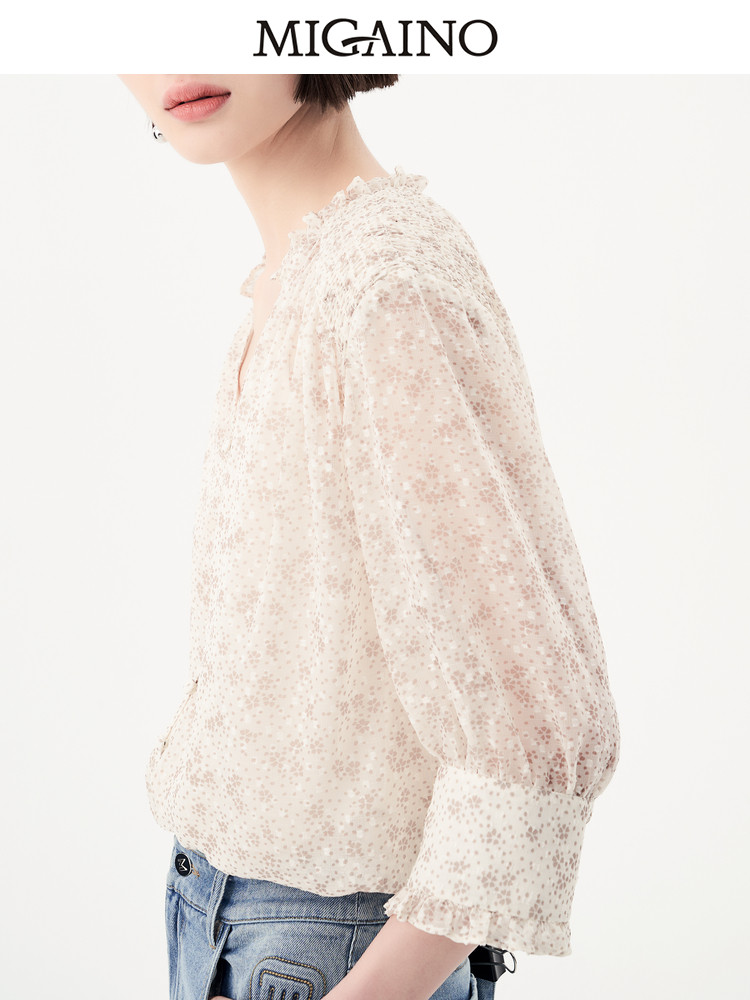 为您提供商品女2023早春新款 气质V领碎花上衣MN32AC005 衬衫 Migaino曼娅奴法式的详细介绍,