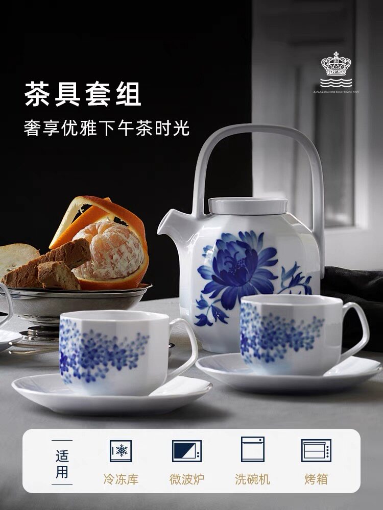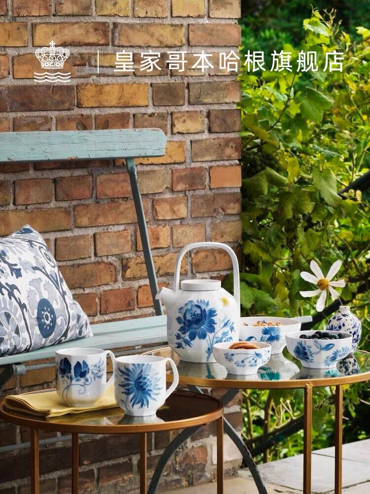 RoyalCopenhagen皇家哥本哈根绽蓝花手绘陶瓷餐具盘水杯茶具送礼由