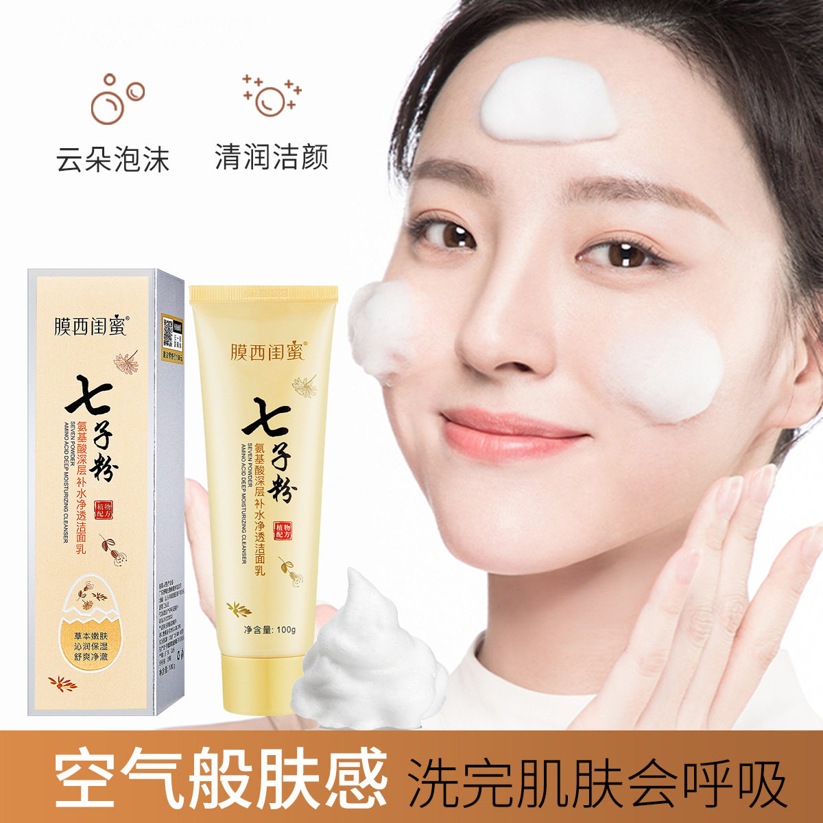 氨基酸深层补水净透洁面乳 七子粉洁面用品洗面奶由