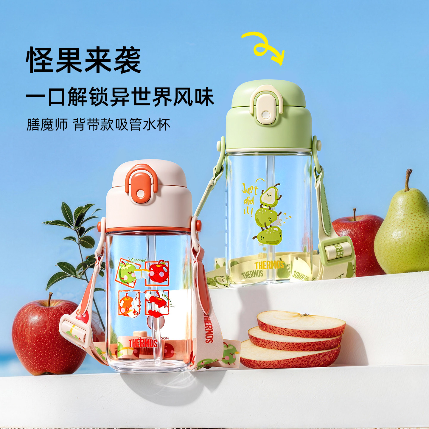 郊游直饮杯便携塑料吸管杯水壶怪果系列 膳魔师旗舰店儿童水杯夏季由