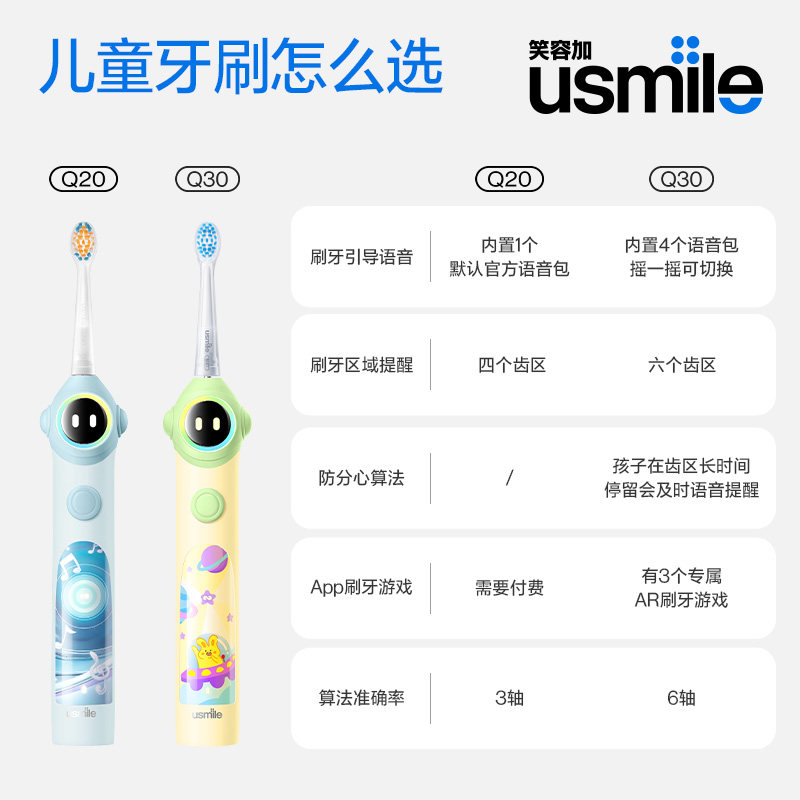 为您提供商品笑容加usmile儿童专用电动牙刷3至12岁宝宝礼物智能语音提醒刷Q20的详细介绍,
