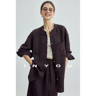 因由 套装 女立领刺绣宽松衬衫 半身裙两件套 极简风高级早初秋时尚