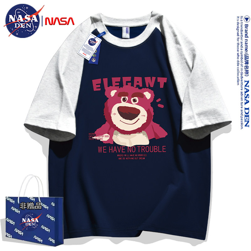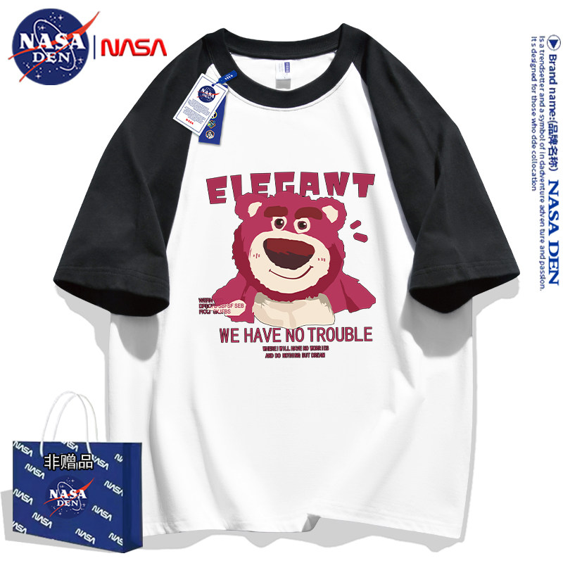 NASA联名夏季 t恤男女款 草莓熊休闲拼接五分袖 上衣服 纯棉插肩短袖由