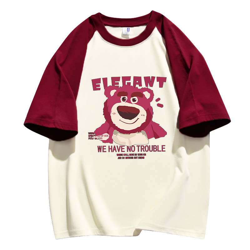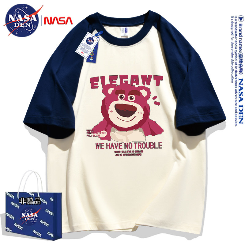 NASA联名夏季 t恤男女款 草莓熊休闲拼接五分袖 上衣服 纯棉插肩短袖