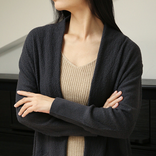 纯山羊绒开衫 女休闲无扣慵懒风外套 2025春秋保暖针织长款 APCSHOP