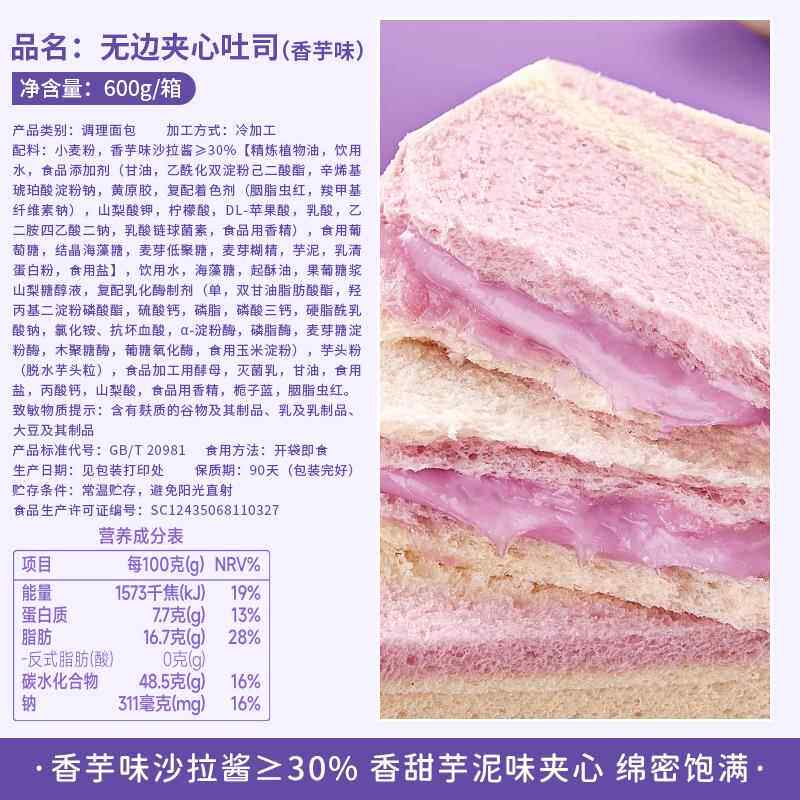香芋无边吐司夹心手撕面包早餐整箱宿舍晚上解饿零食休闲 央妈推荐由