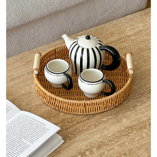 饰摆件收纳筐展示高级 拍照道具韩系仿藤编收纳托盘香薰木质ins装