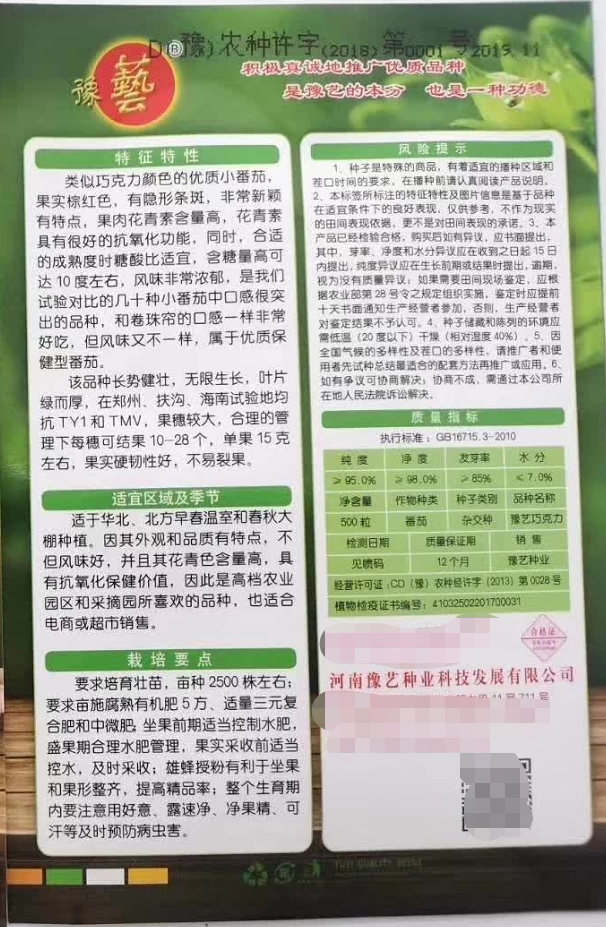 为您提供商品豫艺巧克力小番茄种子 糖度高酸甜比合适 500粒 袋 花青素含量高的详细介绍,