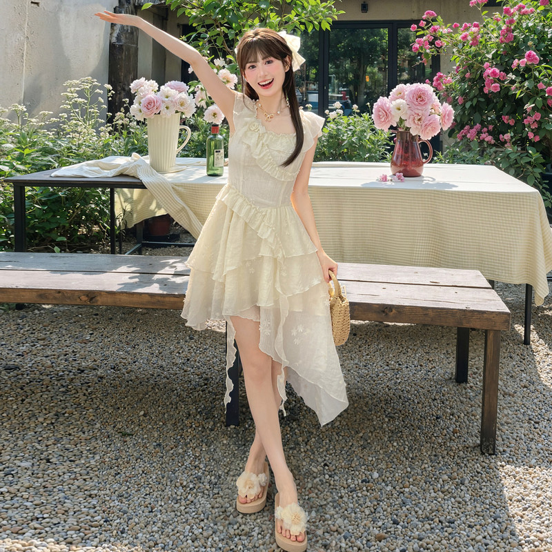 纯色收腰气质显瘦小个子仙女裙 森女部落原创度假吊带连衣裙女夏季