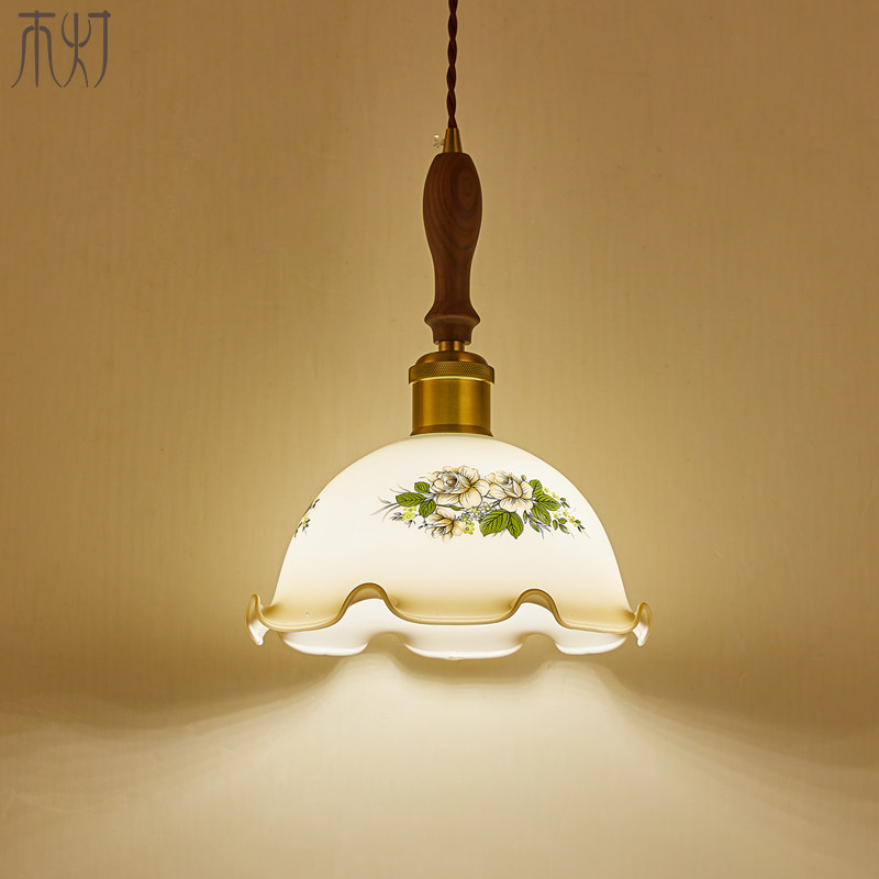 复古釉面印花陶瓷吊灯中古风入户玄关过道卧室床头餐厅吧台灯 日式