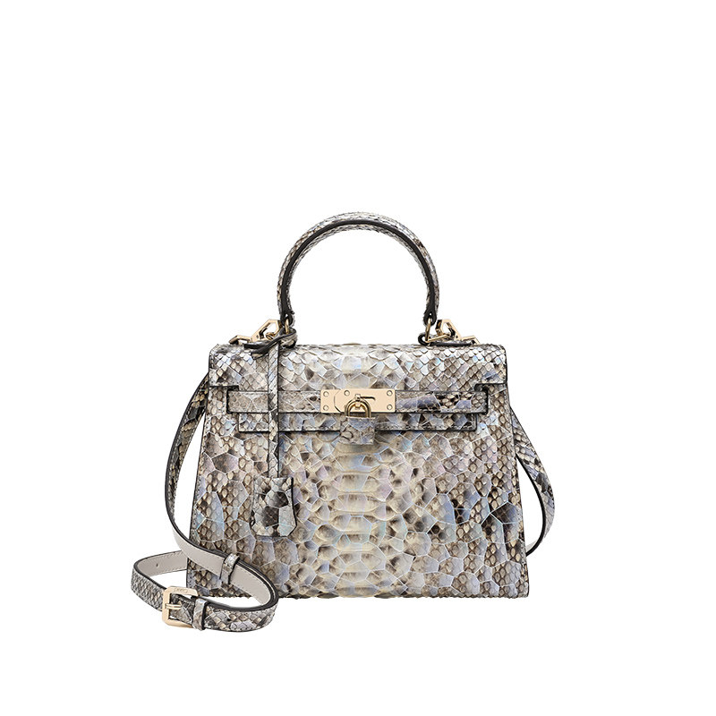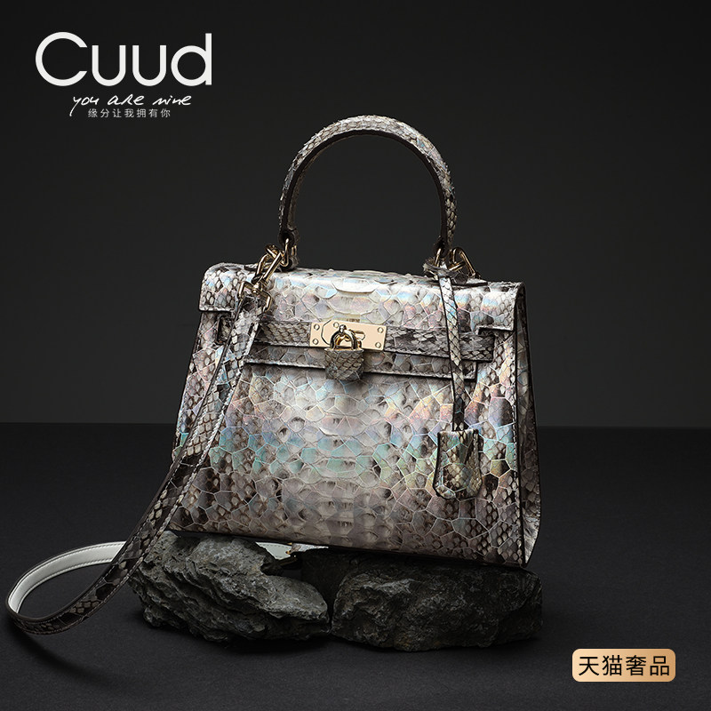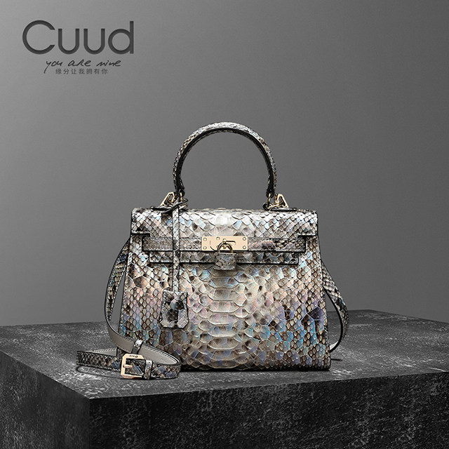 Cuud女包轻奢品牌真皮蛇皮包高级感凯莉包女斜挎手提小包 稀有