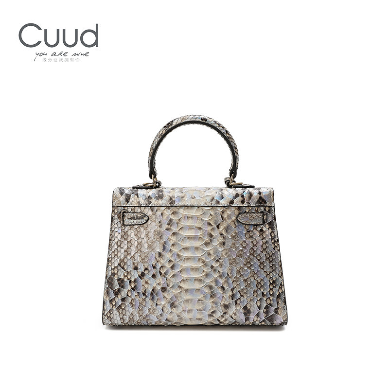 Cuud女包轻奢品牌真皮蛇皮包高级感凯莉包女斜挎手提小包 稀有由