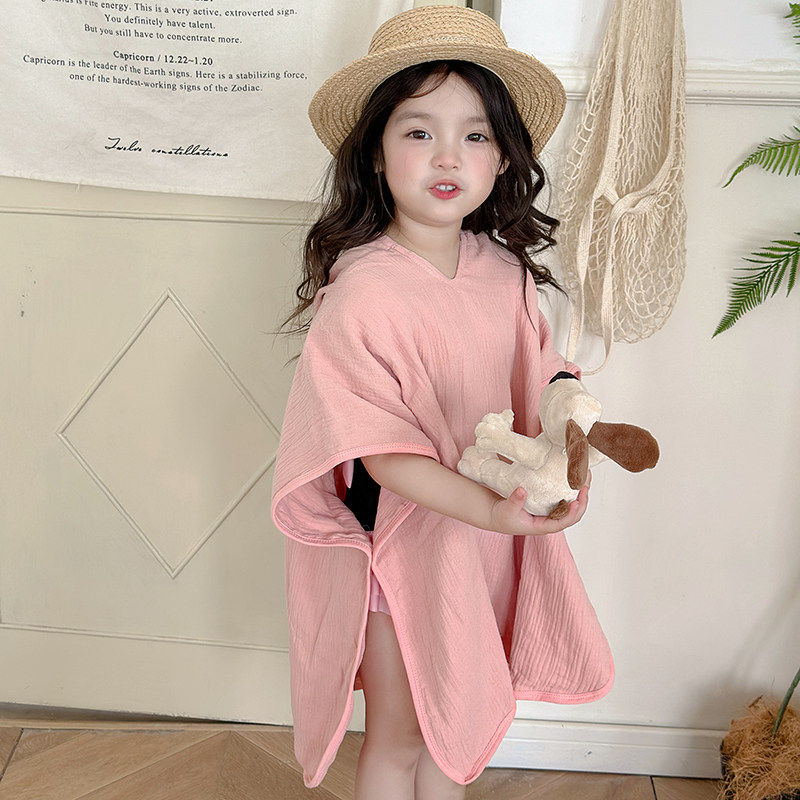 儿童浴巾斗篷带帽全棉纱布浴袍女童洗澡沙滩巾男童吸水可穿裹巾