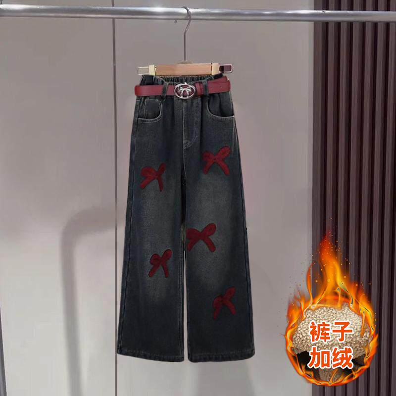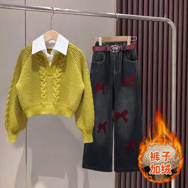 春季 女童两件套装 春装 2026新款 儿童毛衣女孩时髦加绒洋气牛仔裤