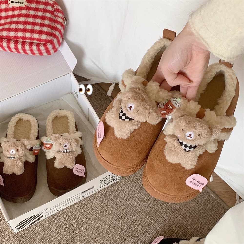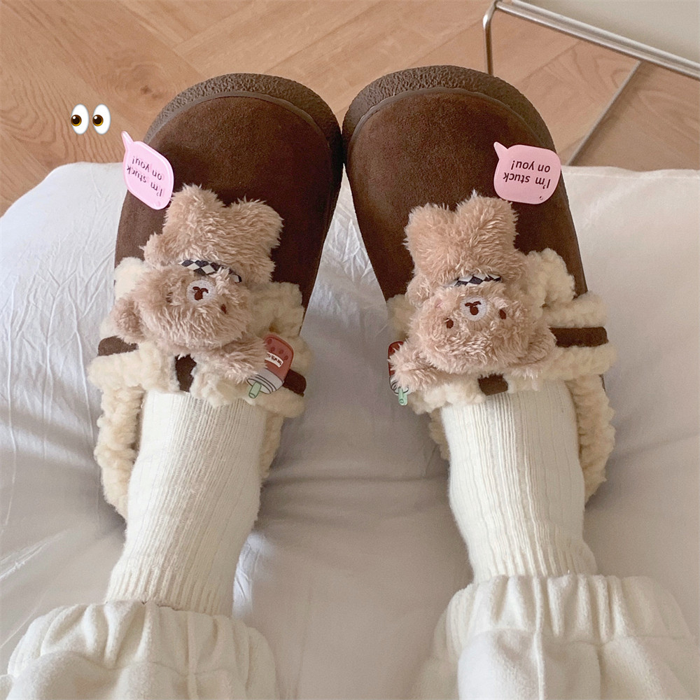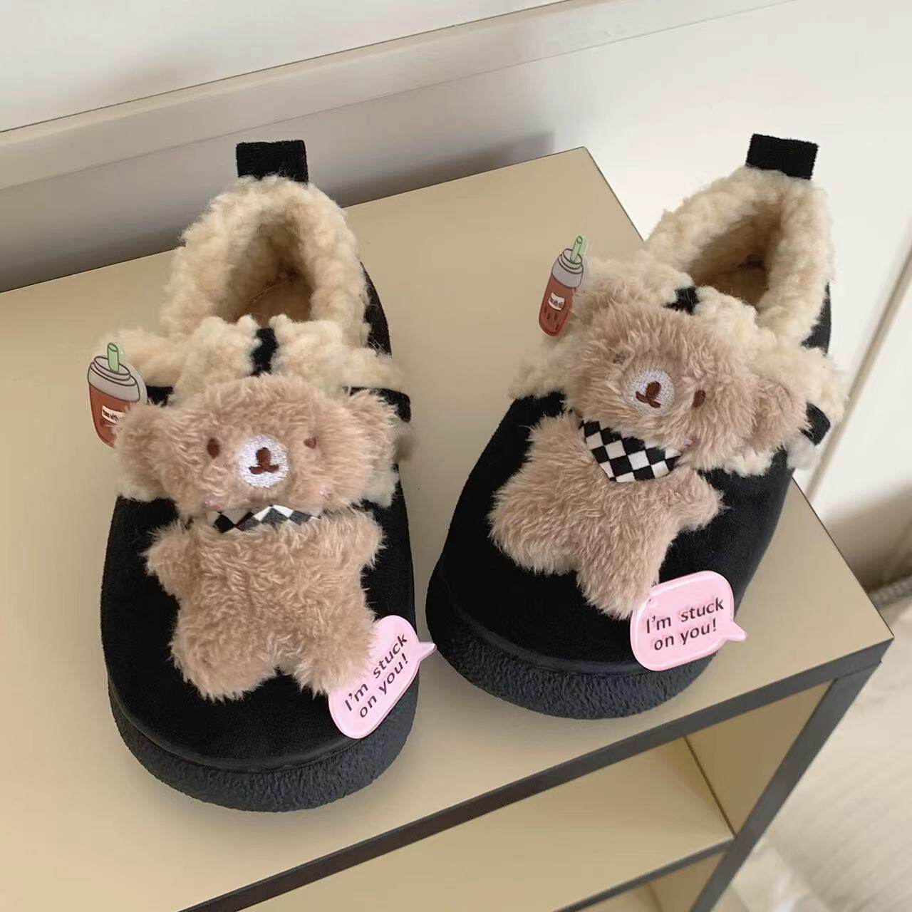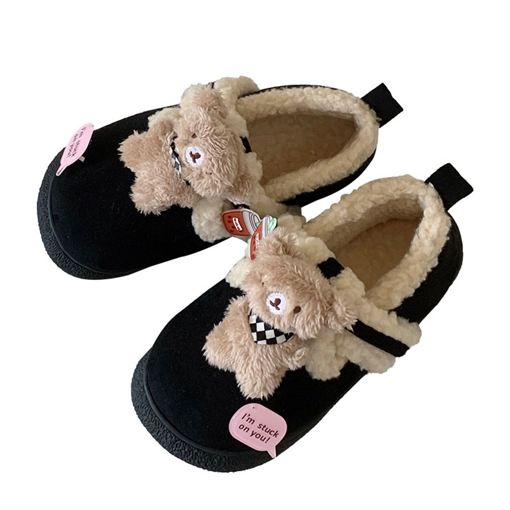 细细条 冬季 亲子可爱小熊勃肯鞋 女 室内外穿保暖防滑全包跟棉拖鞋