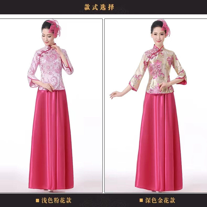 民乐二胡古筝演出服成人新娘服 女大合唱服民国风长裙民族舞蹈服装