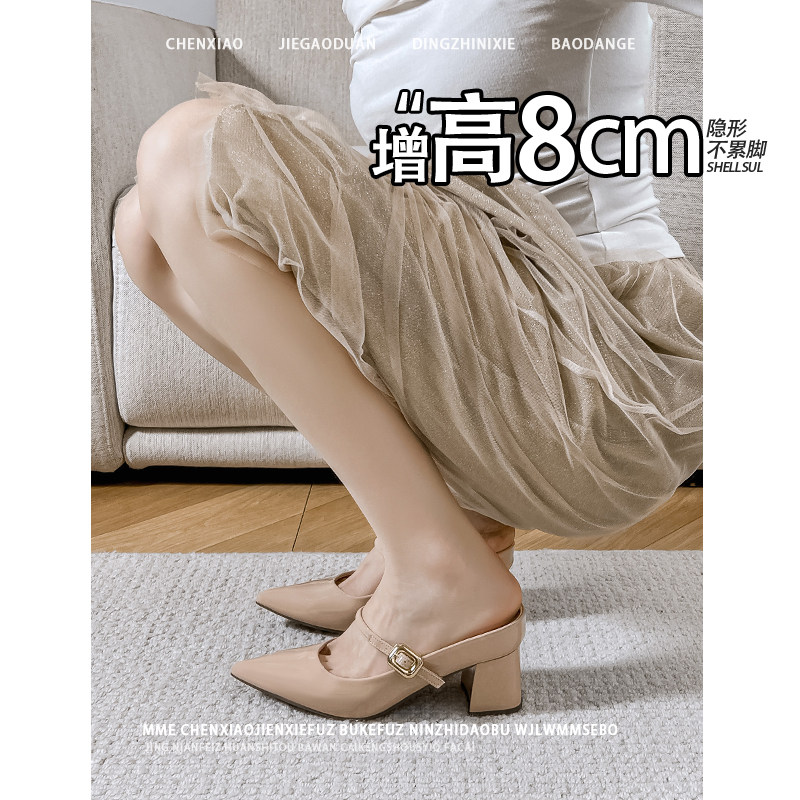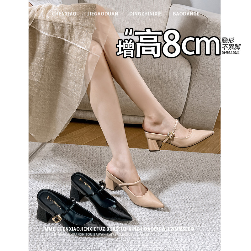 高跟鞋 不累脚 增高8CM2026夏粗跟包头凉鞋 半拖一脚蹬凉鞋 女 单鞋