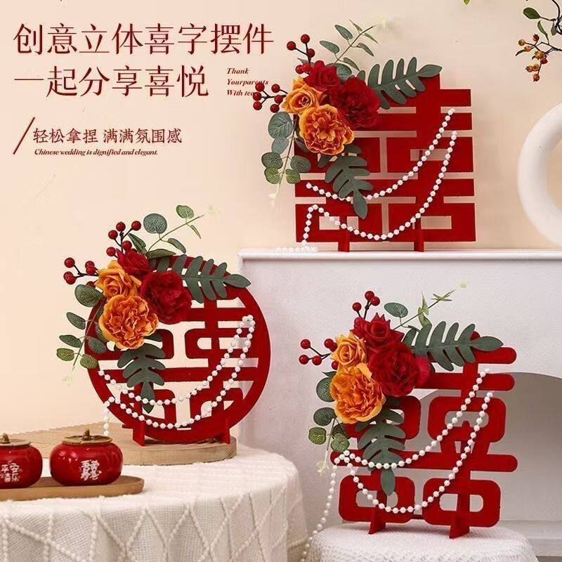 饰客厅卧室立体喜字桌面花艺摆台结婚用品大全 订婚布置摆件婚房装由