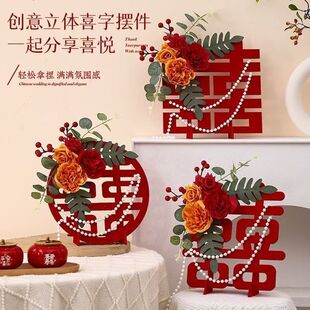 扮摆台婚庆用品大全 结婚喜字立体摆件女方婚房布置客厅餐桌桌面装