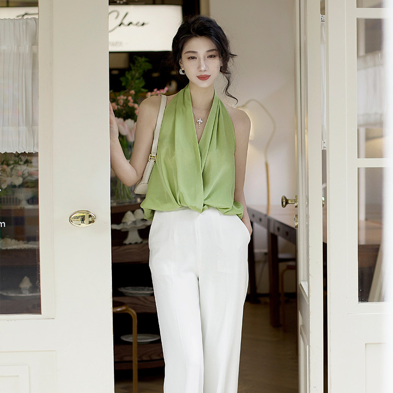 菲埃琳FILINGME 新款 通勤简约时尚 度假背心挂脖绑带上衣女 26夏季