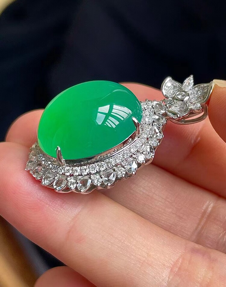 为您提供商品18k白金奢华镶钻 木那阳绿鸽子蛋翡翠吊坠冰种冰阳绿翡翠蛋面挂件的详细介绍,