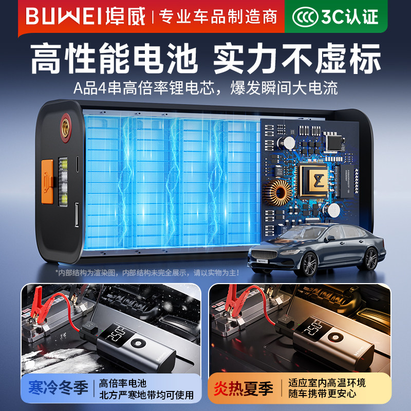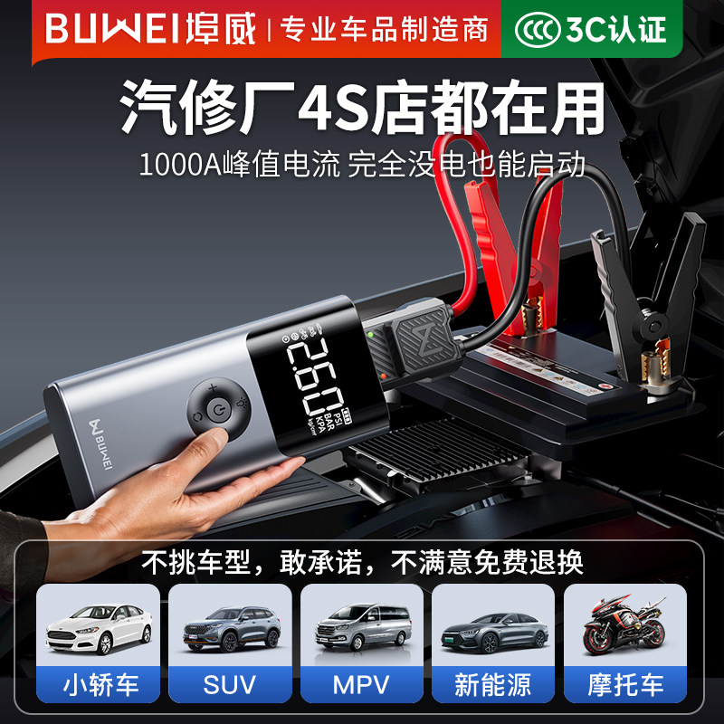 埠威BUWEI汽车应急启动电源车载充气泵一体机电瓶搭电宝打火神器由