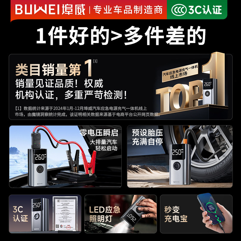 为您提供商品埠威BUWEI汽车应急启动电源车载充气泵一体机电瓶搭电宝打火神器的详细介绍,